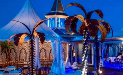 Wer hier oben die Dachterrasse betritt, entdeckt eine faszinierende, unerwartete Welt. Weiss betuchte Zelte, geschmückt mit orientalischen Wandteppichen, dazu kunstvoll gestaltete Palmen, bequeme Clubtische, eine elegante Gangway zum Flanieren. Den Höhenpunkt der Szenerie bildet schliesslich das „Salettl“ mit seinem markanten Leuchtturm und einer Rundumsicht, wie man sie in Aarau sonst nirgendwo findet. Der Innenbereich bietet Platz für bis zu 50 Gästen, im Aussenbereich und in den Zelten finden bis zu 100 Personen bequem Platz.